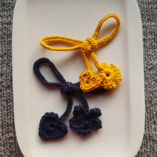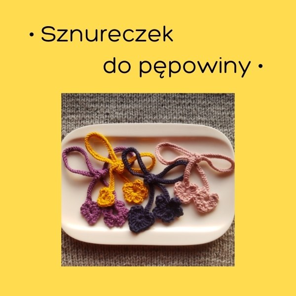szydełkowy sznureczek do pępowiny z dekoracyjnym zakończeniemSznureczek do pępowiny