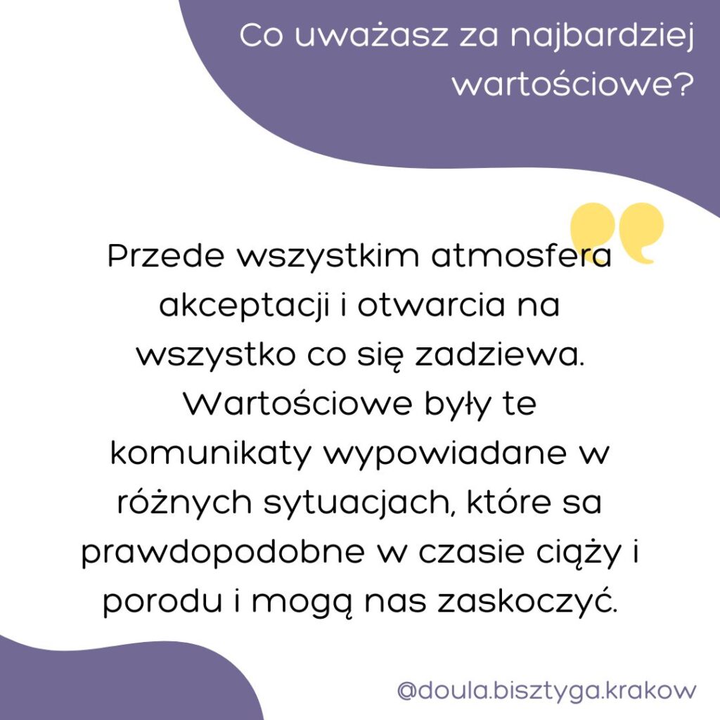 Chyba dopiero na warsztatach poczułam, że to jest faktycznie moja ciąża i mój poród. Jakoś wcześniej nie było to dla mnie oczywiste. Potem wiele decyzji podjęłam już myśląc o tym, że to ja jestem w ciąży i to jest moje dziecko. To było przełomowe.